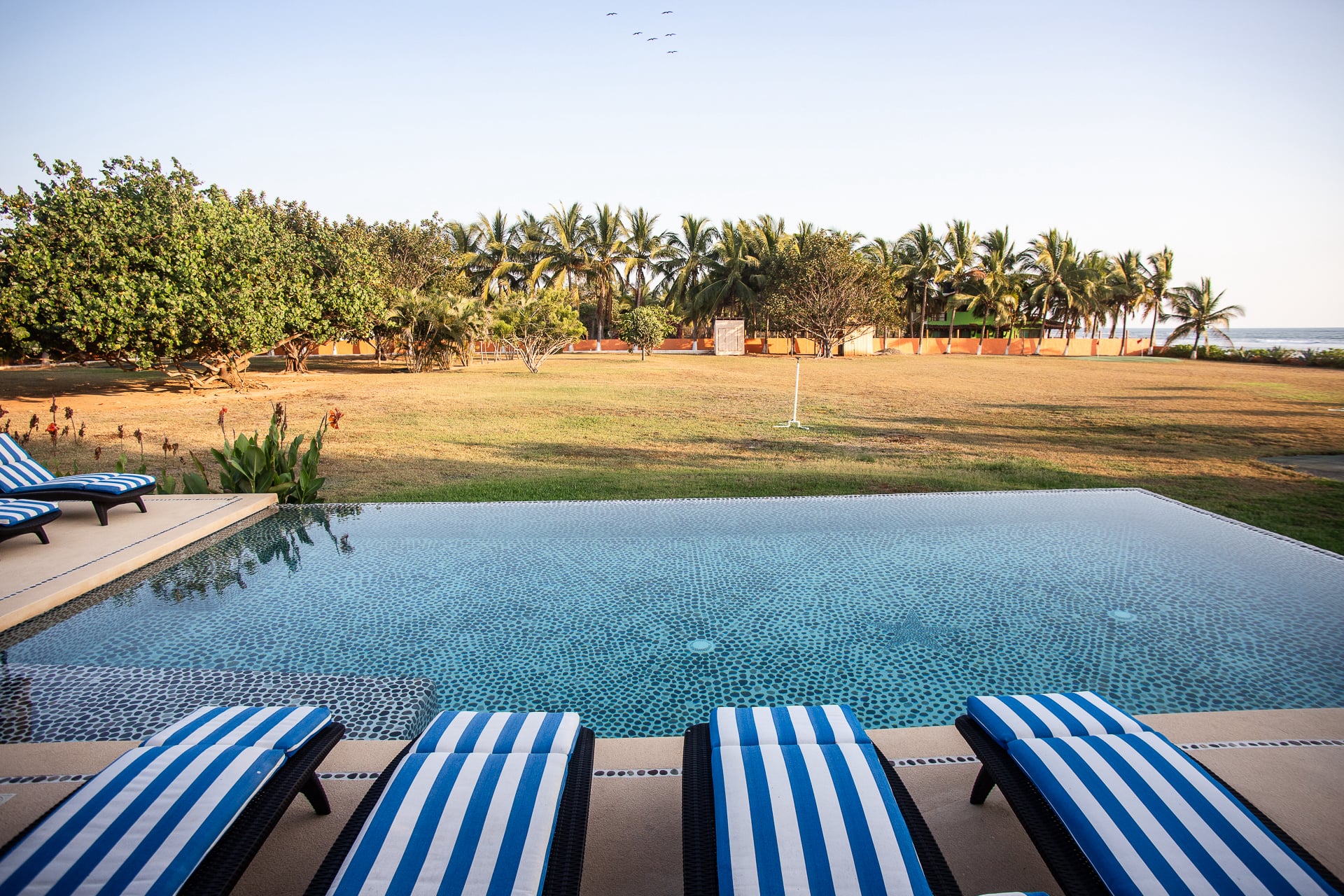 Designed for relaxed coastal living, the property includes generous interior common areas, a large oceanfront veranda, and beach decks with loungers and hammocks, all surrounded by lush, beautifully maintained tropical gardens. The architecture reflects a refined Mexican style, blending natural materials, open spaces, and timeless design with a warm, inviting atmosphere.