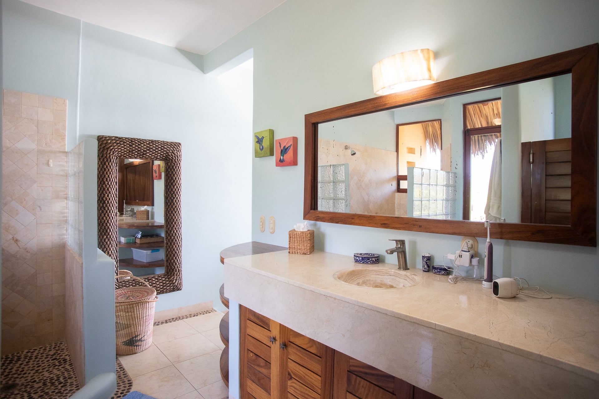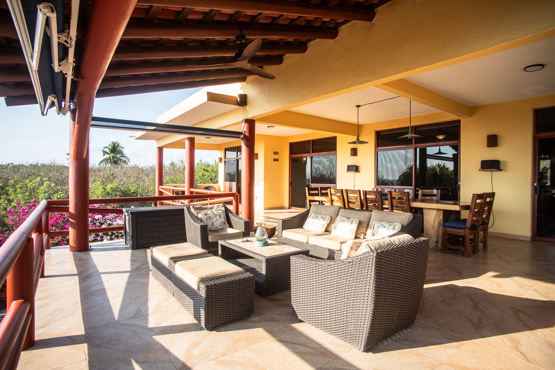 One of the highlights of this property is the expansive terrace and palapa, where you can indulge in breathtaking direct views of the ocean and the famous surf break. Whether you're sipping your morning coffee or enjoying a sunset cocktail, this outdoor space is ideal for soaking up the natural beauty that surrounds you.