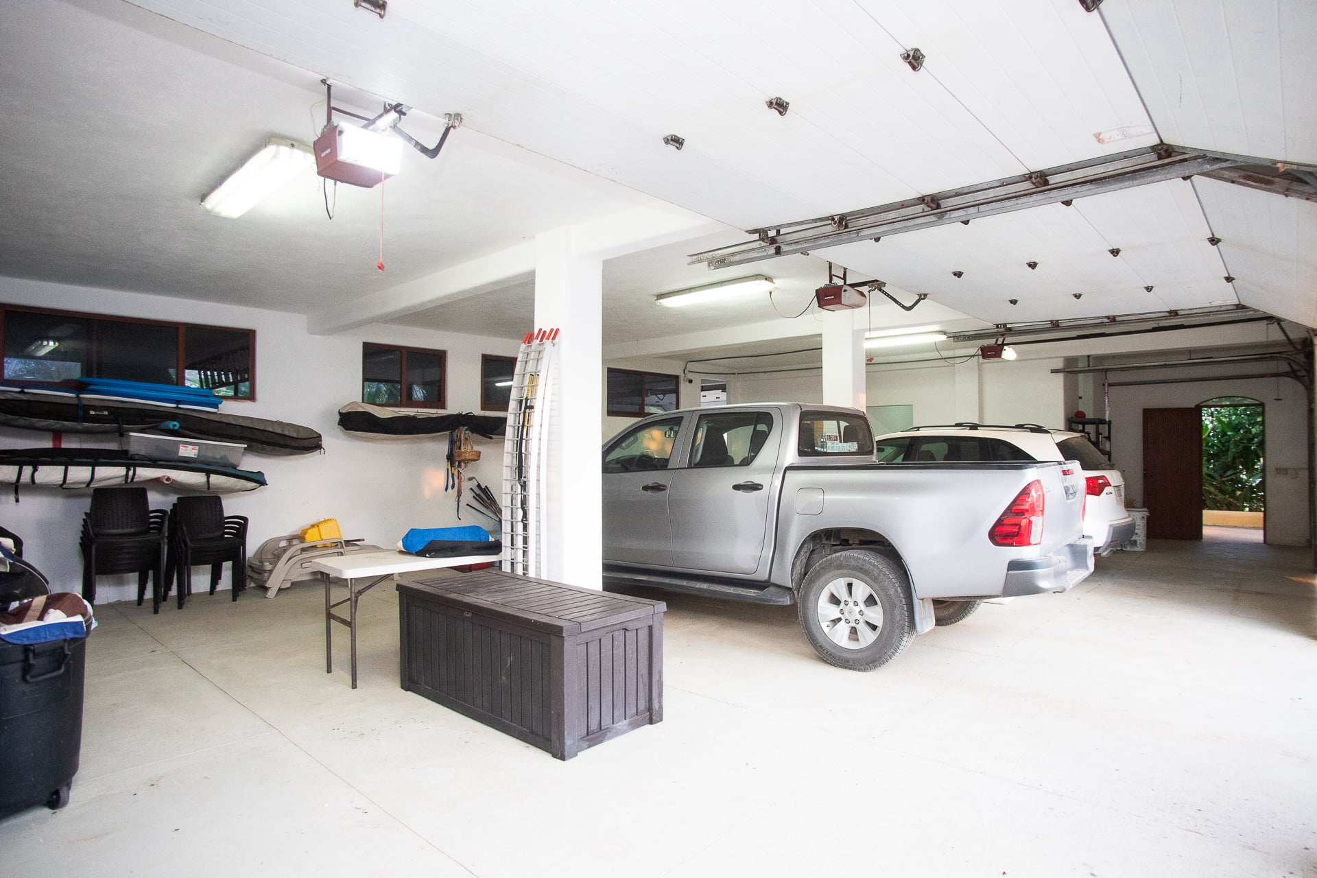 On the ground level, the property includes a large garage with space for up to three vehicles, as well as additional room for storage or workshop use.