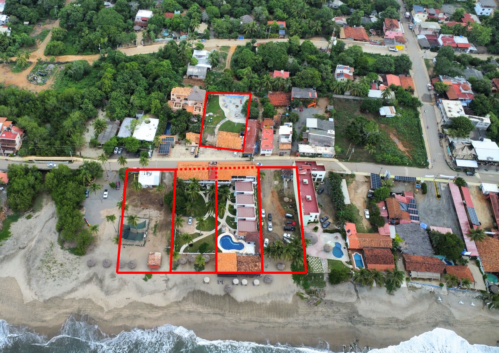 With multiple lots, significant beach frontage, and existing hospitality infrastructure, this property offers a rare opportunity for expansion or a larger beachfront development project in one of the most central locations in Troncones.