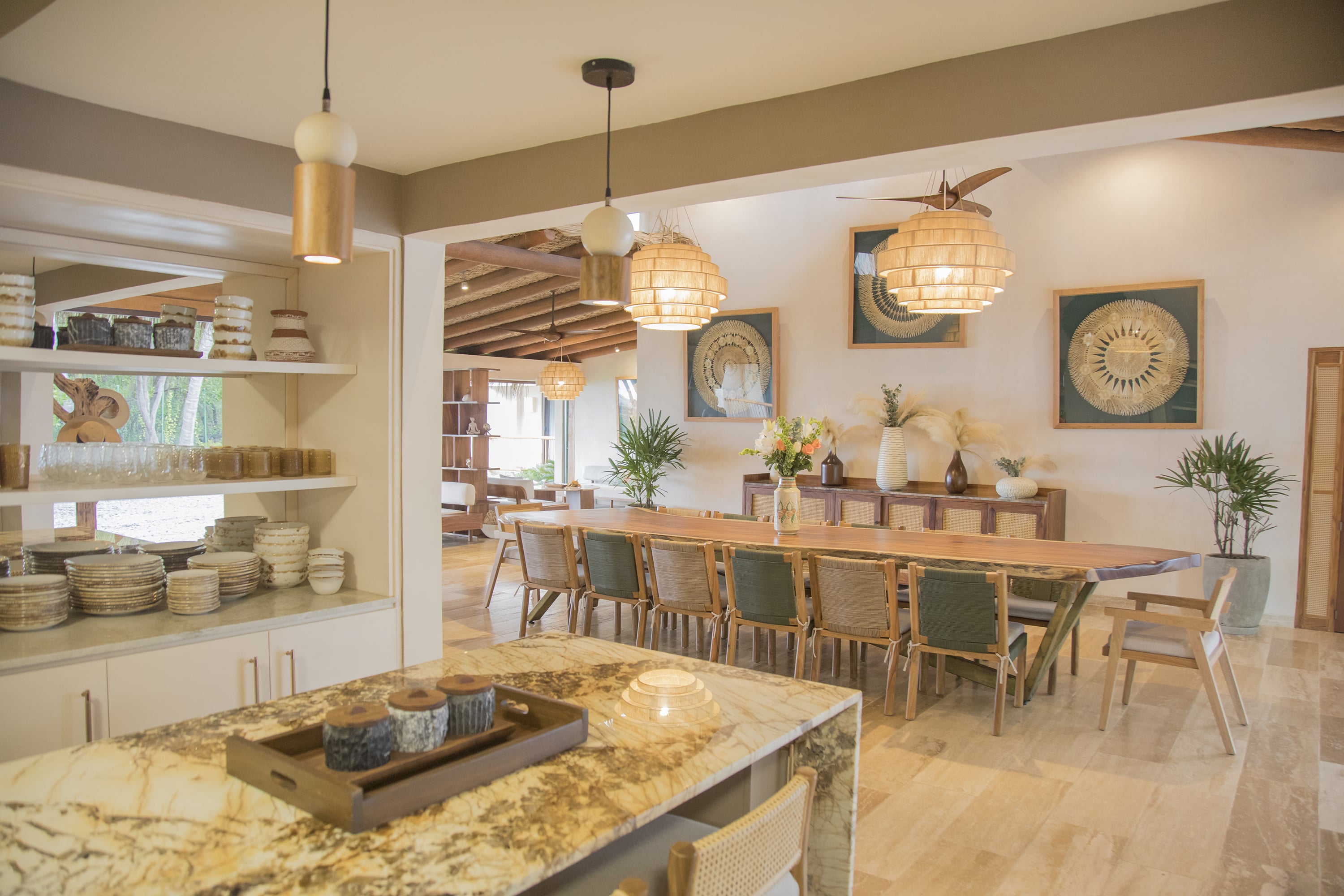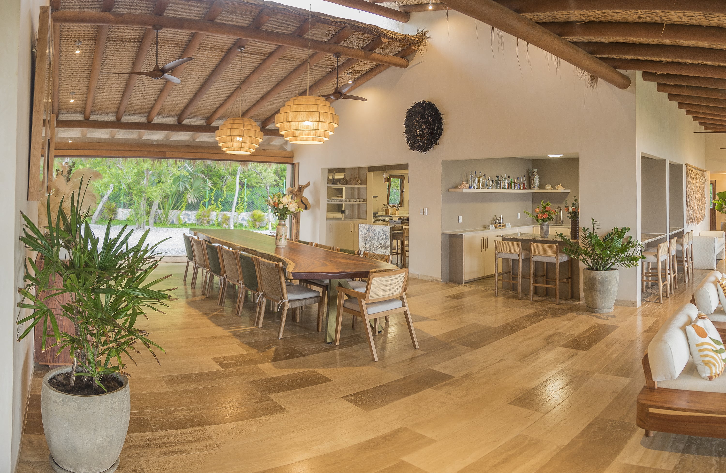 At the heart of the property is a stunning open-air living and dining area under a handcrafted palapa, where comfort meets breathtaking ocean views. Whether you're enjoying a sunset cocktail, a shared meal, or quiet time listening to the waves, this space is made for memorable moments.