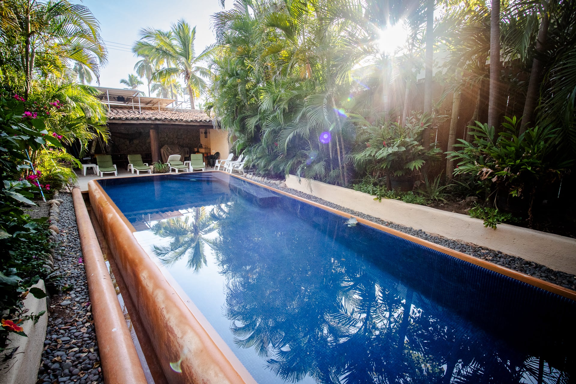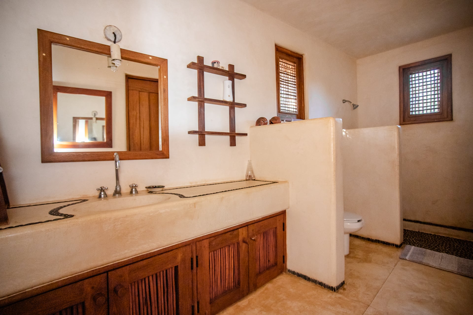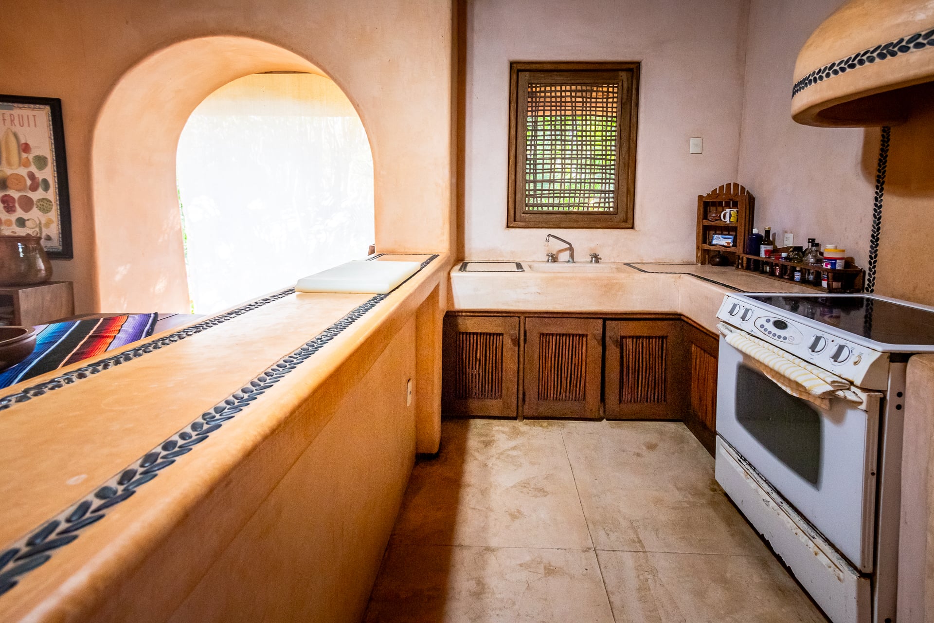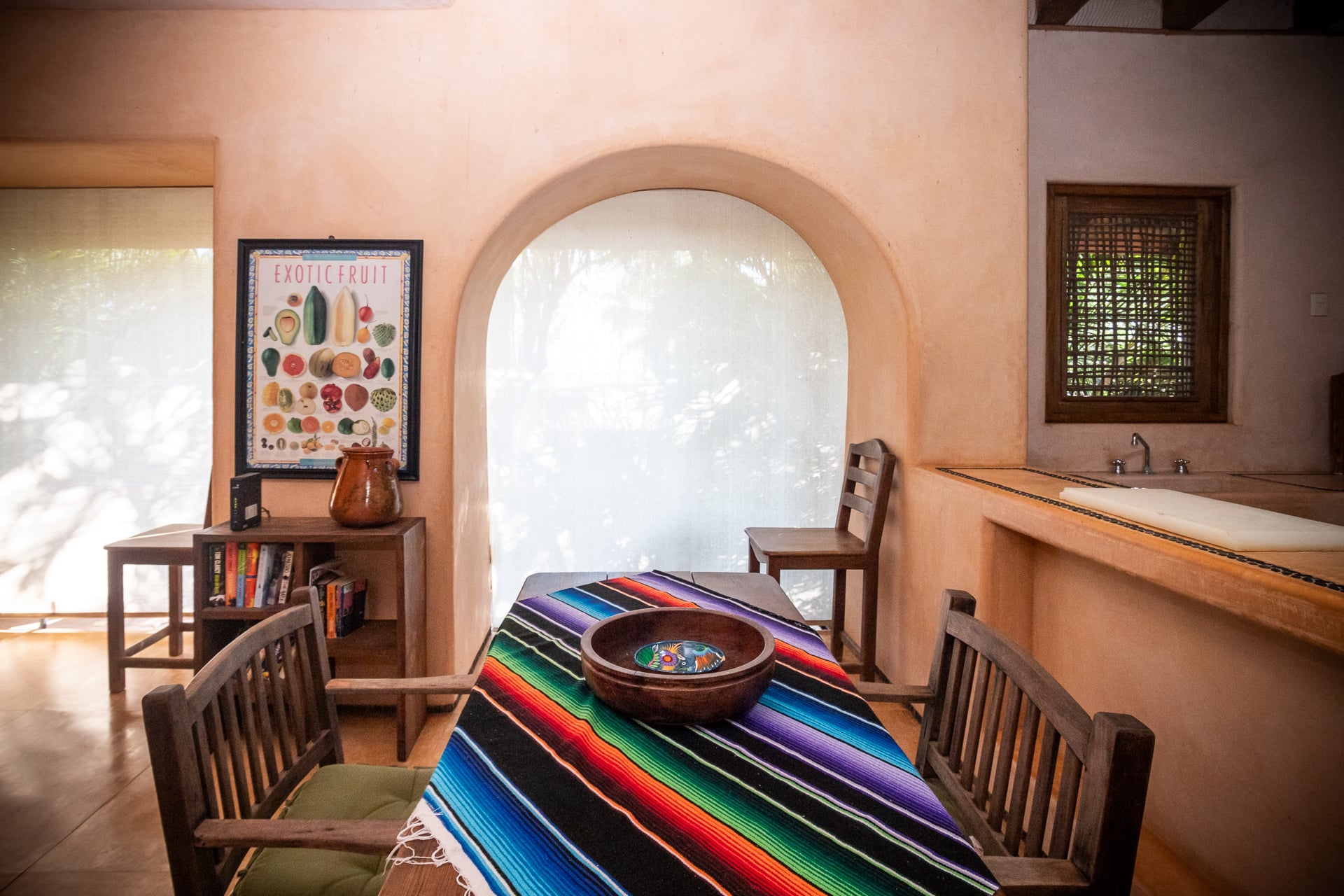 Cuenta con una recámara principal con cama king-size, una sala amplia y una gran alberca compartida rodeada de un jardín exuberante y muy bien cuidado. Los muebles y acabados tienen un estilo rústico pero cuidadosamente diseñado, creando un ambiente cálido y acogedor. Cocina totalmente equipada, área de lavado y todo lo necesario para sentirse como en casa.