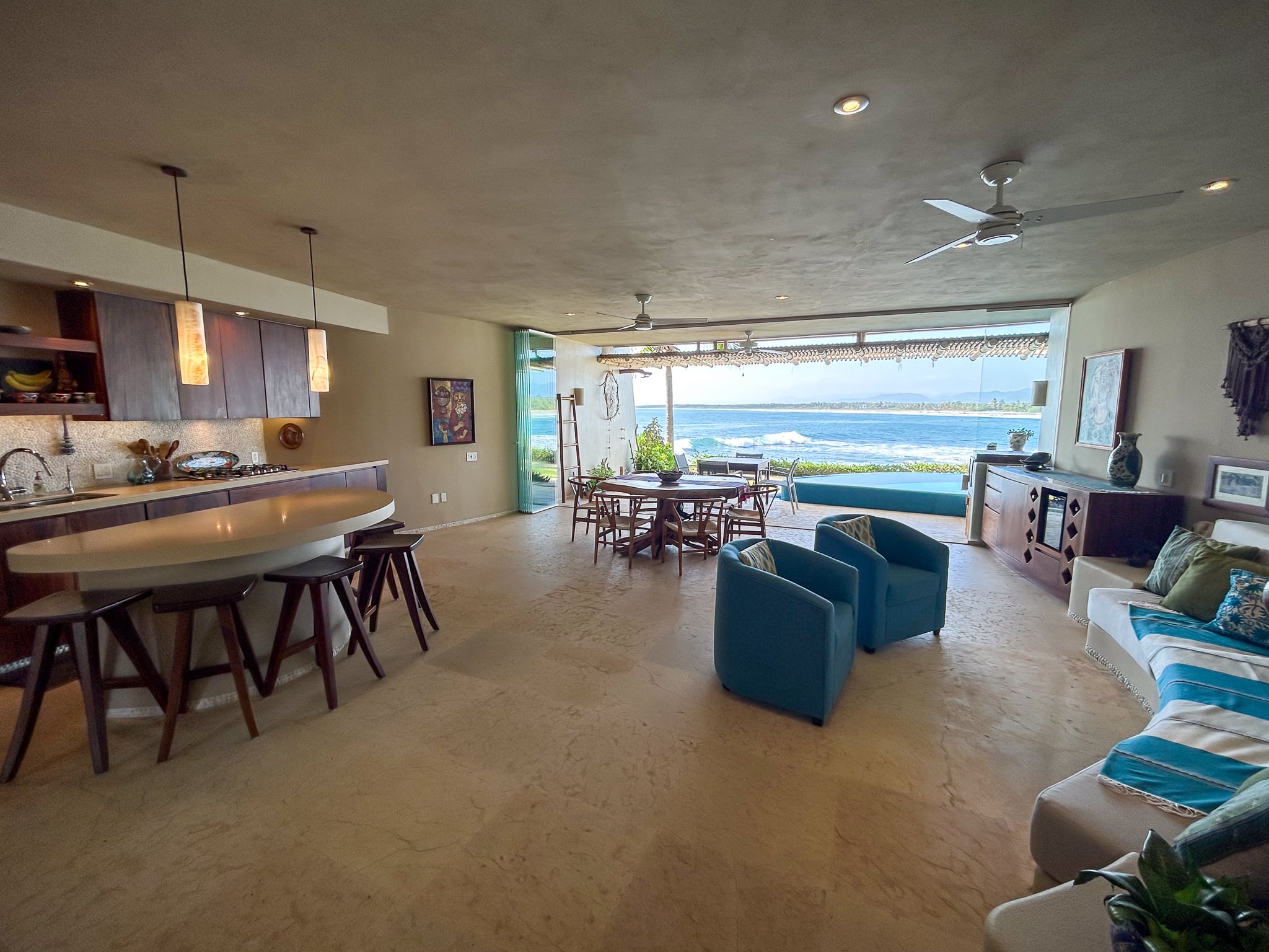 Lujoso condominio en planta baja con espectaculares vistas al mar y a las montañas en Playa Majahua.