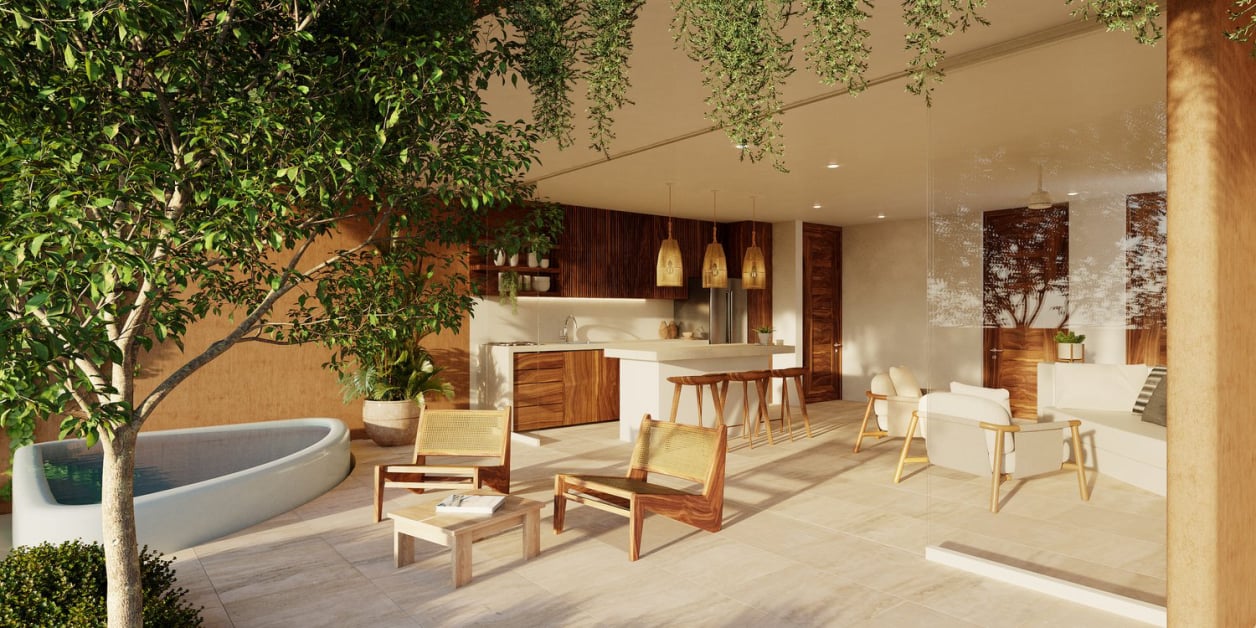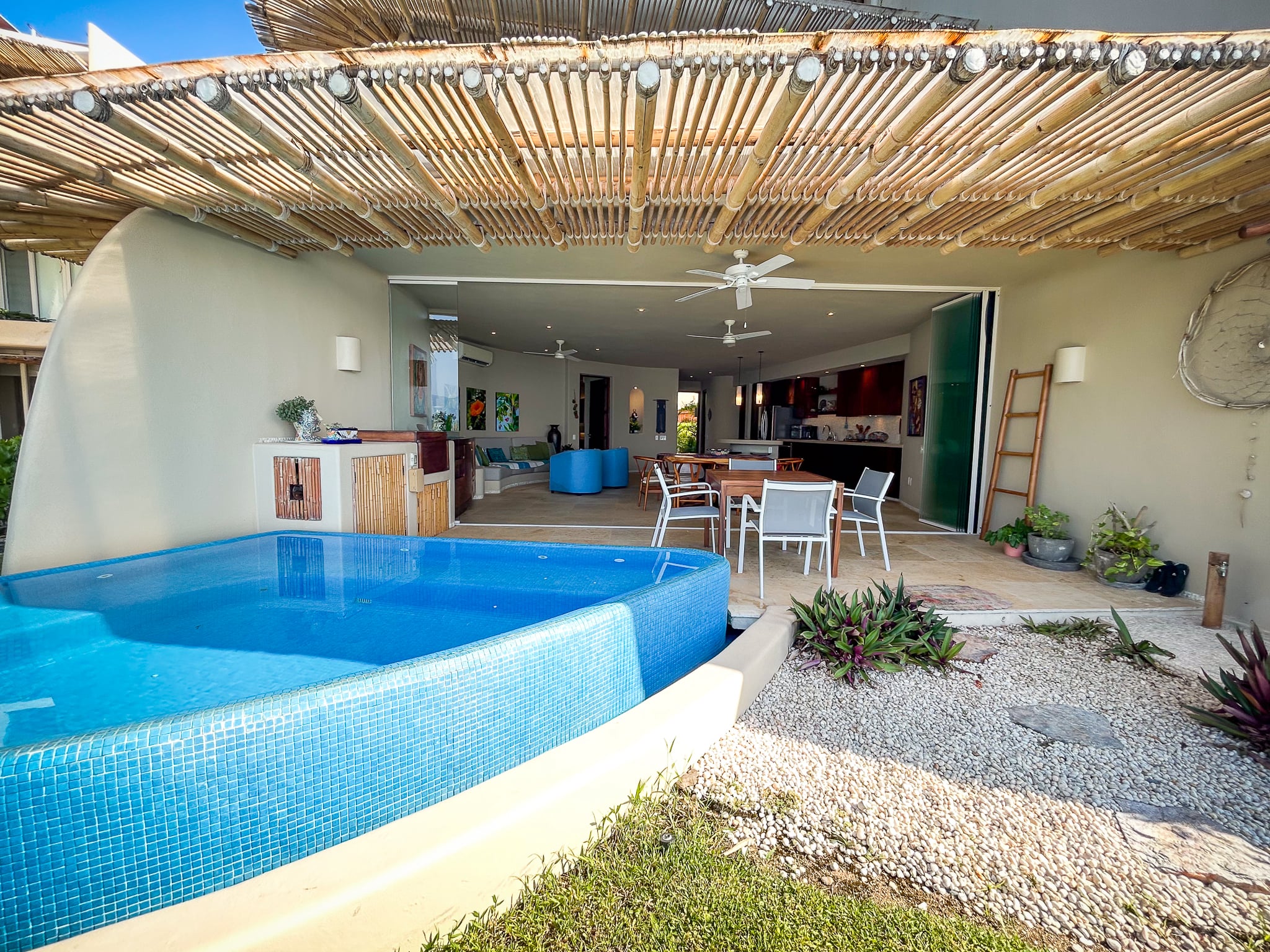 Con 180 m² de espacio habitable (1,937 pies cuadrados), esta residencia destaca por su hermoso jardín, alberca privada climatizada tipo plunge pool y una terraza extendida junto a la recámara principal, creando un escenario inmejorable para disfrutar del paisaje. La conveniencia de contar con cochera brinda espacio no solo para tu auto, sino también para todo tu equipo de playa y actividades al aire libre.