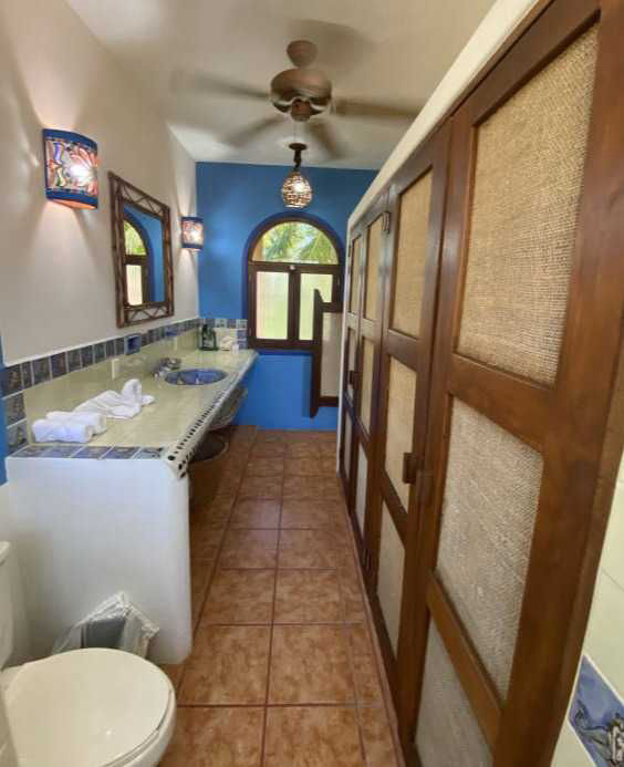Ubicado en el tercer piso, la brisa es constante. Estos 780 pies cuadrados están construidos en un estilo mexicano tradicional. Al ingresar al condominio, tiene un diseño abierto de cocina, comedor y sala de estar. Los azulejos amarillos mexicanos tradicionales en la encimera de la cocina le dan color al espacio abierto. El techo de madera le da a la habitación un toque rústico y elegante. El dormitorio es de buen tamaño, cerrado con aire acondicionado.