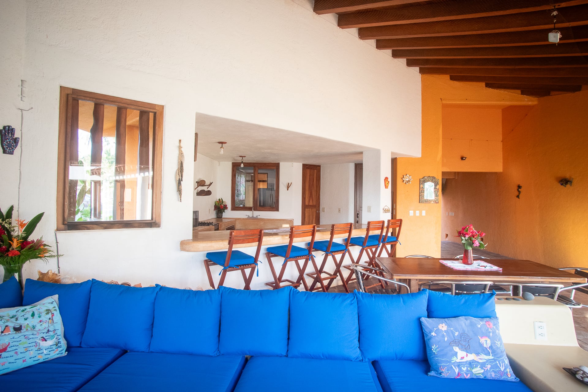 La decoración tradicional mexicana de la amplia cocina hace que este sea un gran espacio para cocinar y entretener a familiares y amigos.