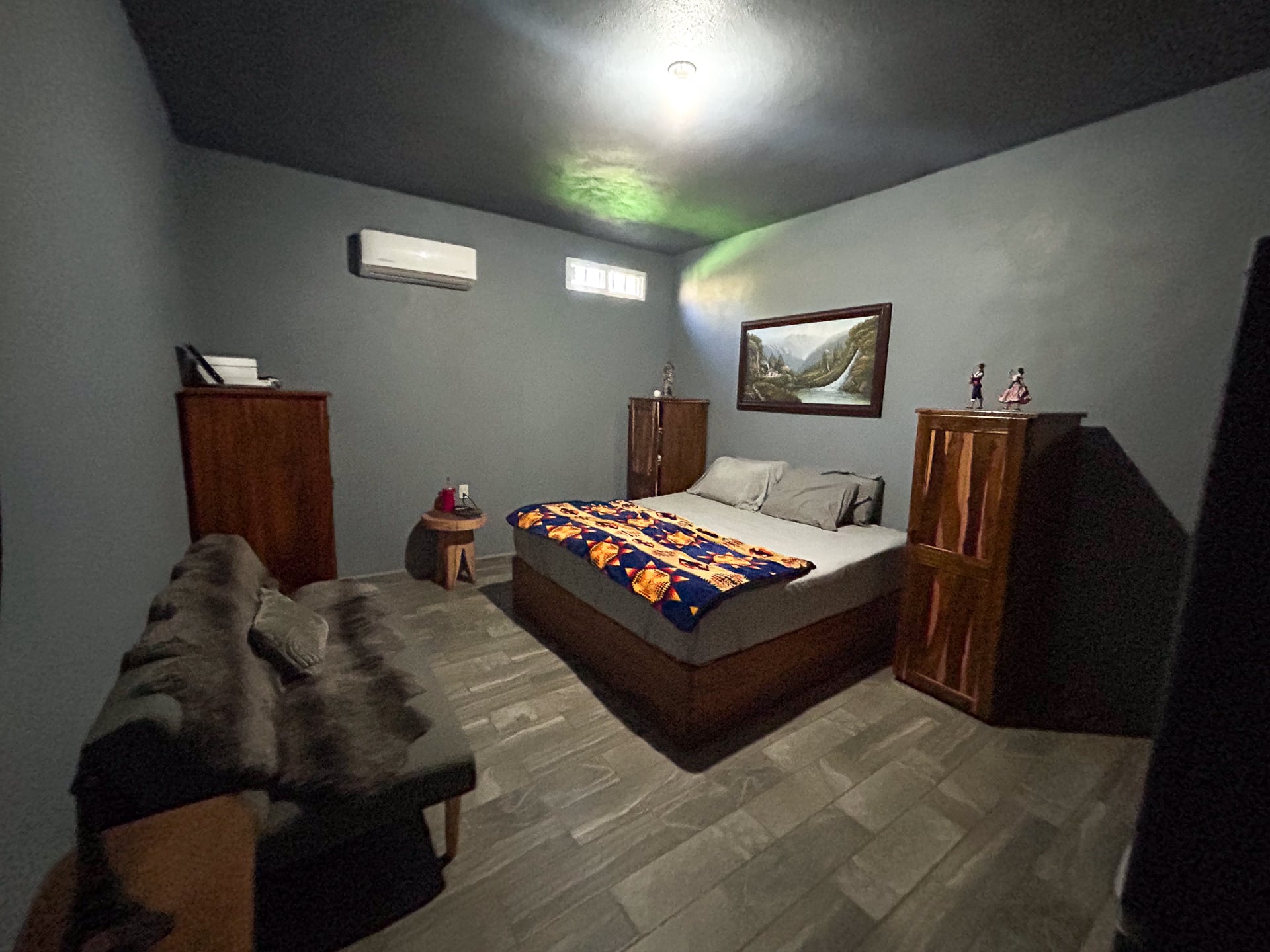 El último dormitorio se encuentra en la parte trasera, este baño es una cabaña rústica y cómoda, completamente privada y adecuada para invitados adicionales.