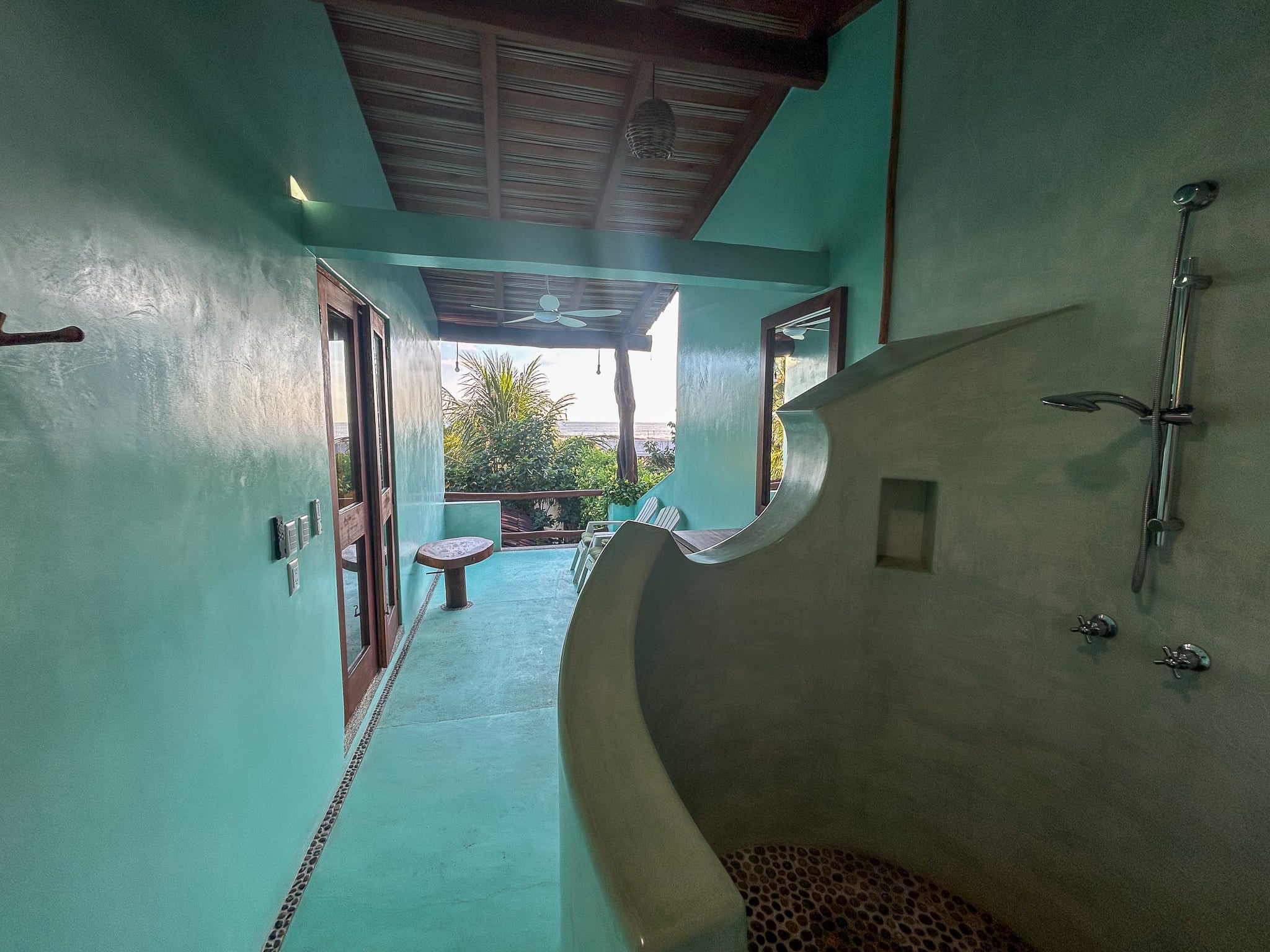 Siéntase como en casa en estas acogedoras habitaciones que ofrecen un diseño moderno y una hermosa vista. Relájese en la hamaca o en la sala de estar y admire la impresionante vista al mar. La tercera habitación está en el piso inferior, una habitación de palapa que combina un diseño moderno con un estilo artesanal de construcción local. Esta gran habitación cuenta con un balcón de madera que da a una fuente de agua que se disfruta desde la cama mirando hacia el océano.