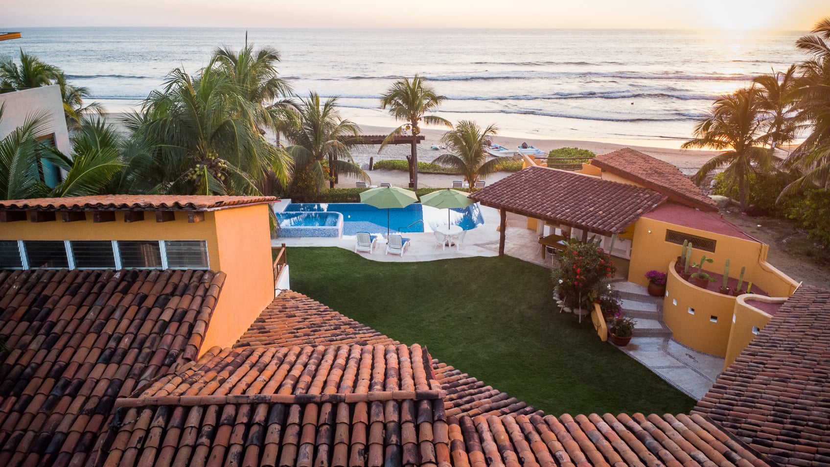 Casa Viva es la única propiedad en Troncones que ofrece cuatro lotes adyacentes directamente en la playa, lo que le da a la propiedad una vista espectacular de 80 metros frente a la playa.
