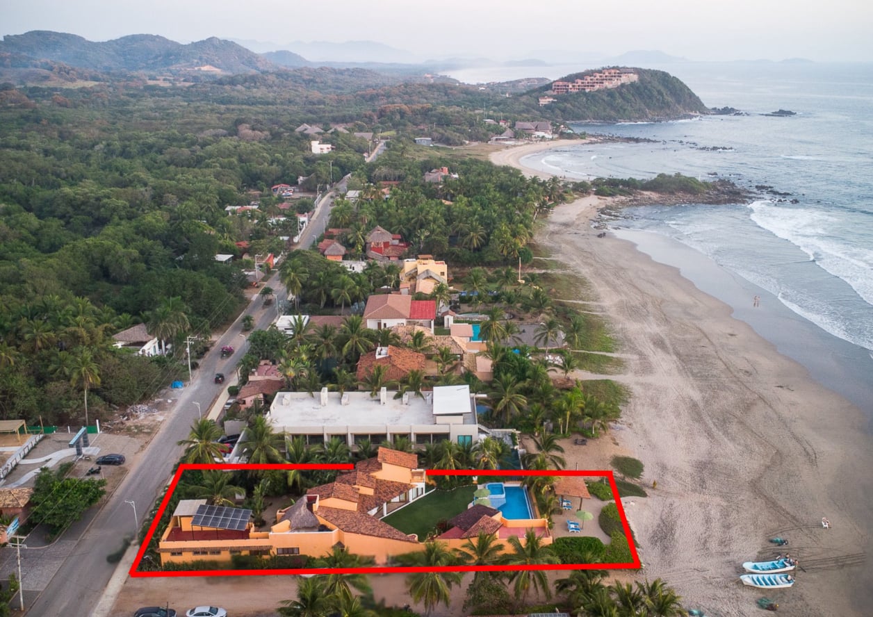 Ubicada en un terreno de 1,000 m² con aproximadamente 3,500 pies cuadrados de construcción, esta amplia propiedad frente al mar se encuentra en la parte sur de Troncones, directamente sobre una playa de arena ideal para nadar durante todo el año. Sin rocas ni obstáculos en la orilla, se trata de una de las zonas más deseadas de la región para nadar, relajarse y disfrutar del océano.