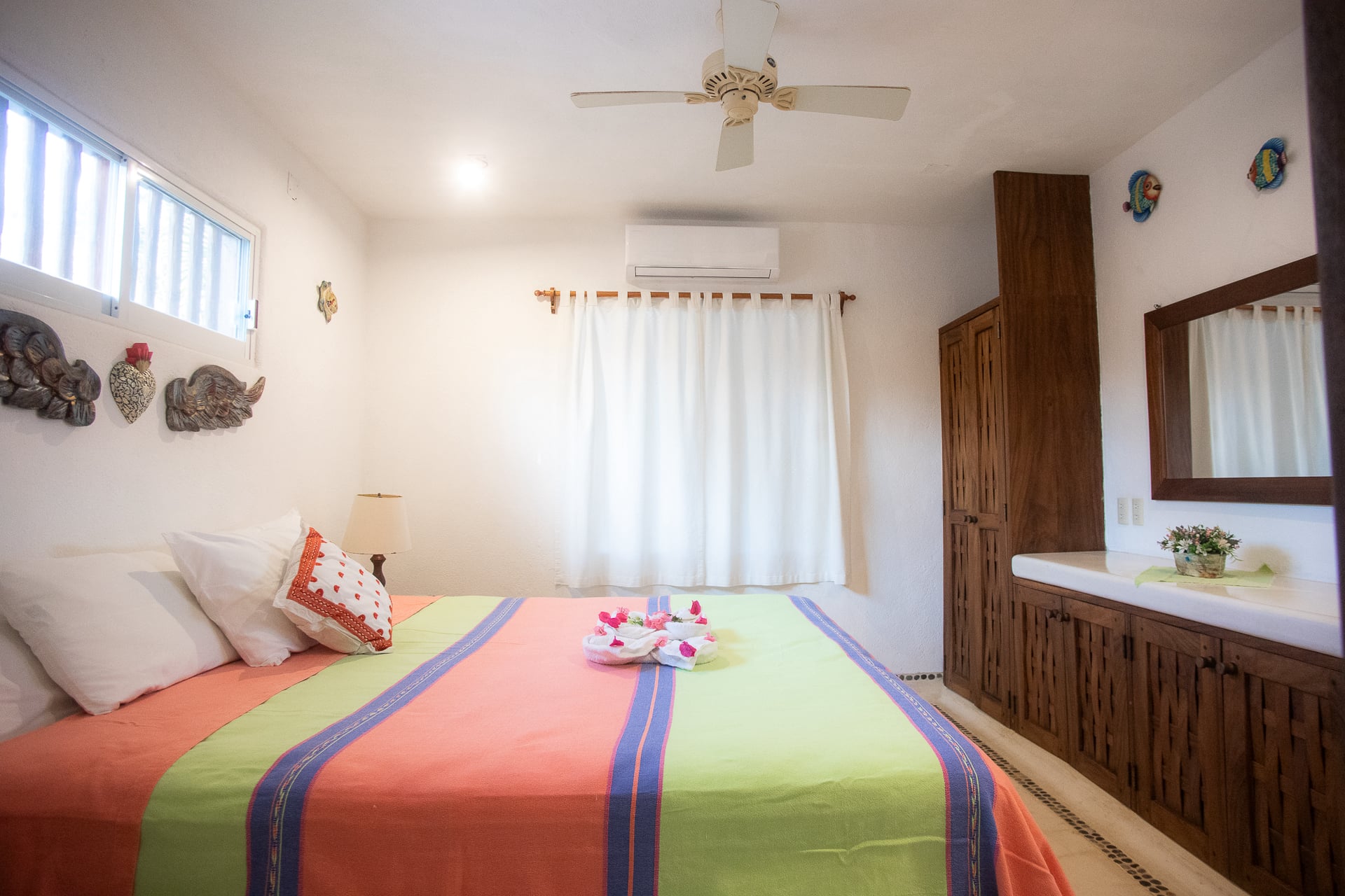 Esta casa incluye dos suites principales con vista al mar con aire acondicionado, camas tamaño king y baños privados. Además de dos villas con jardín en la parte trasera con sus propios baños privados con increíbles vistas y ambiente al jardín.