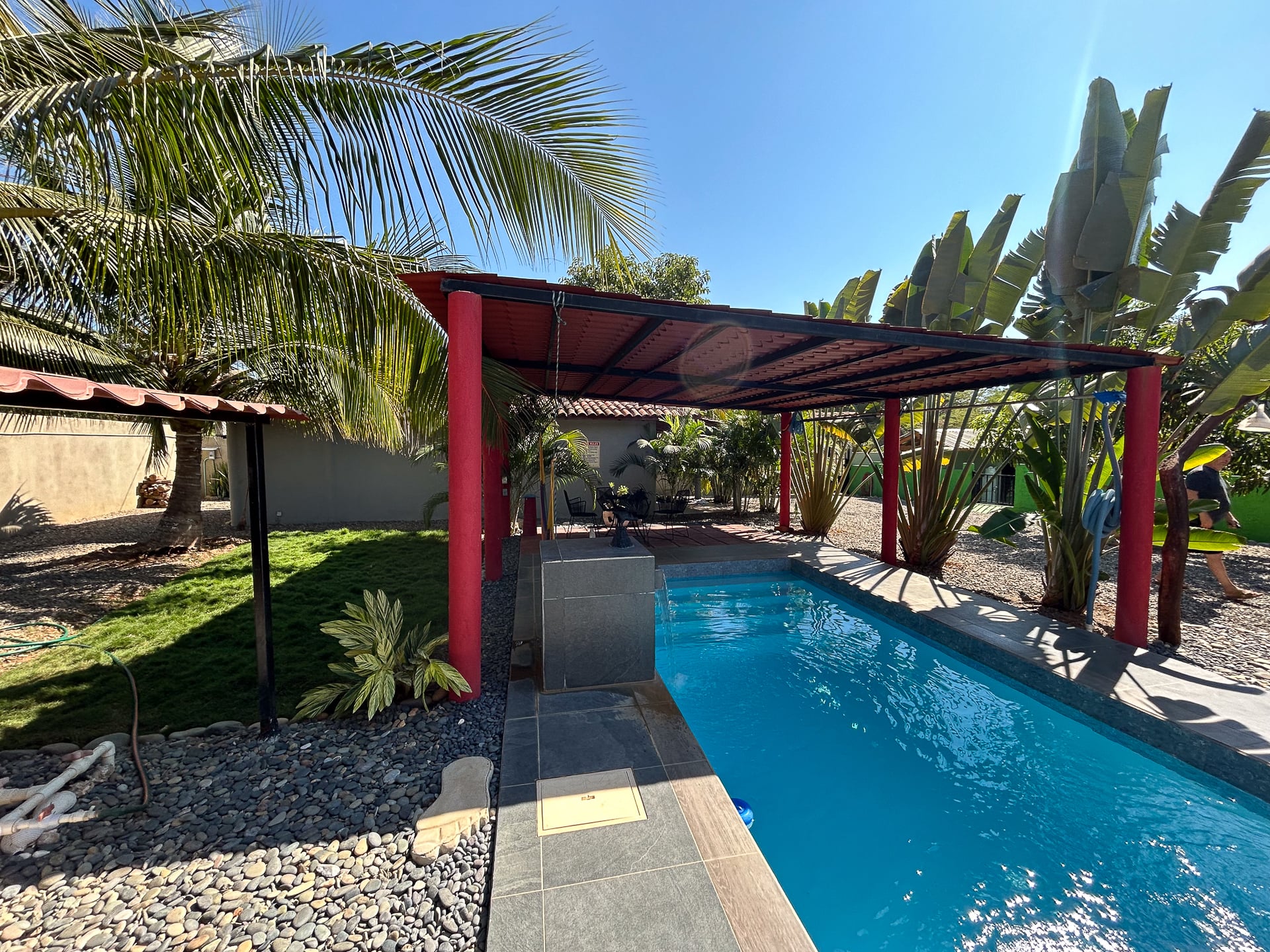Un edificio separado alberga el equipo de la piscina y una “bodega” de almacenamiento.